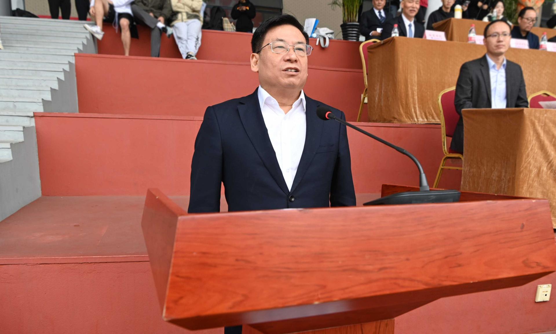 27日下午,运动会圆满结束,桂富强致闭幕辞。他希望同学们不断涵养堪当民族复兴重任的志气、骨气和底气,牢固树立健康第一的理念,养成良好的锻炼习惯,常邀同窗伙伴相聚绿茵场,共同奏响“西财梦”与“强国梦”的协奏曲。
