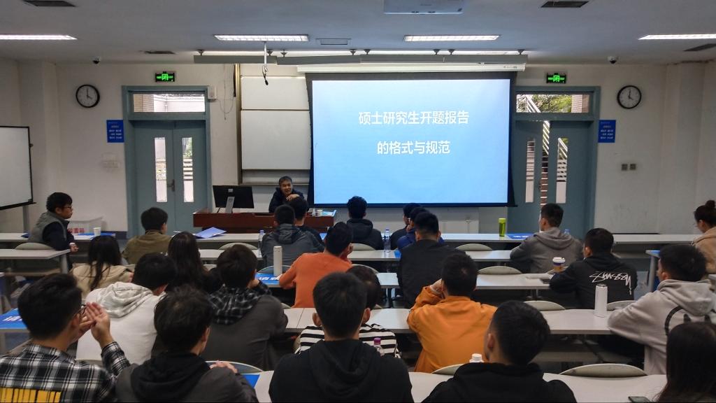 在讲座上,王广虎教授结合自身丰富的体育科研经历与写作经验,同在场师生重点分享了硕士研究生在论文开题报告写作中的格式与规范。王教授从选题依据、写作提纲、文献综述等方面向同学们介绍了开题报告的撰写方法。同时指出,论文写作要从问题出发,构建“一般—特殊—个别”逐步深入的选题思维层级结构,并用丰富的案例和生动的语言进行讲解。在场师生被王教授独到的学术见解、渊博的学识修养和严谨的治学态度所吸引,收获颇丰。